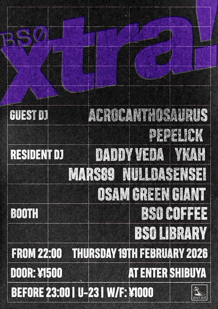 多様なバックボーンを持ったDJたちが、ダブ、ダブステップ、グライム、ジャングル、ブレイクビーツ、テクノなどのスタイルを“現代のパンク”と捉えて一夜に落とし込む、BS0xtra(ビー・エス・ゼロ・エクストラ)。