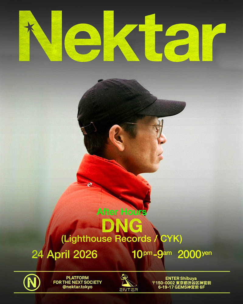 そして国内からはNektar/ダンスフロア共々、厚い信頼が寄せられるCYKよりDNGを招く。