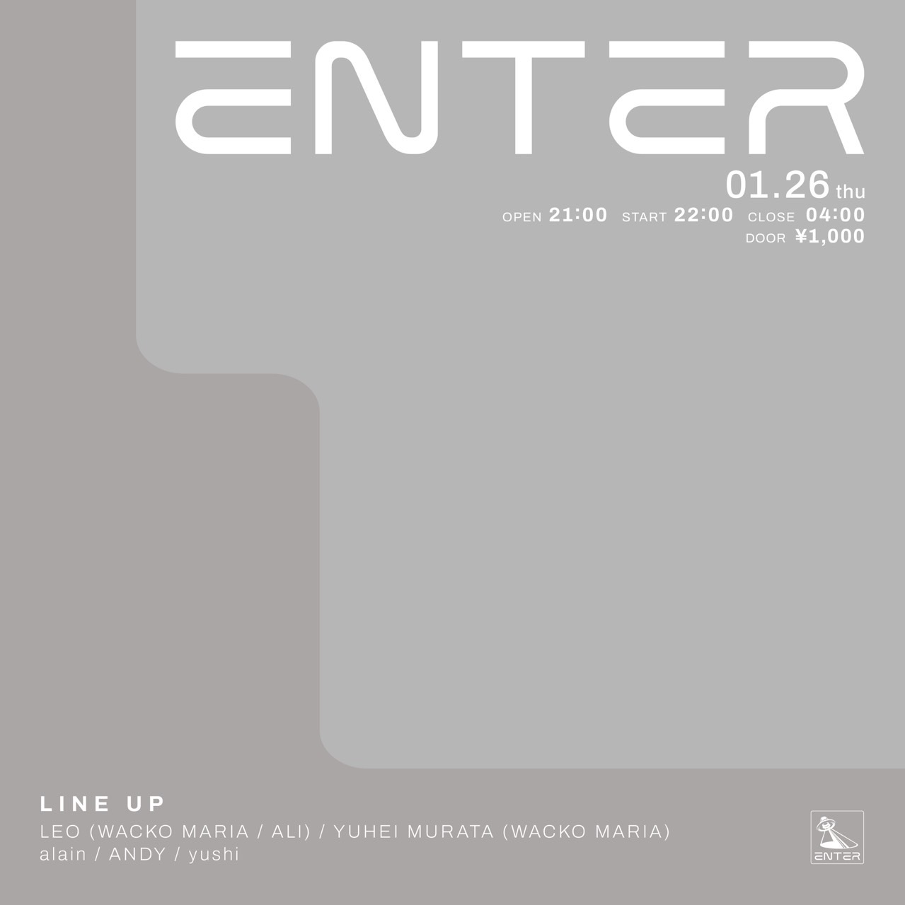 多様な国にルーツを持ち、2021年に活動再開を果たし、飛ぶ鳥を落とす勢いのバンドALIのリーダーVo. LEO、ENTERのオープニングパーティで最高な選曲でフロアーにグルーヴをもたらしたYUHEI MURATAを筆頭に、alain、ANDY、yushiとおしゃれで粋な男5名による夜会を開催。