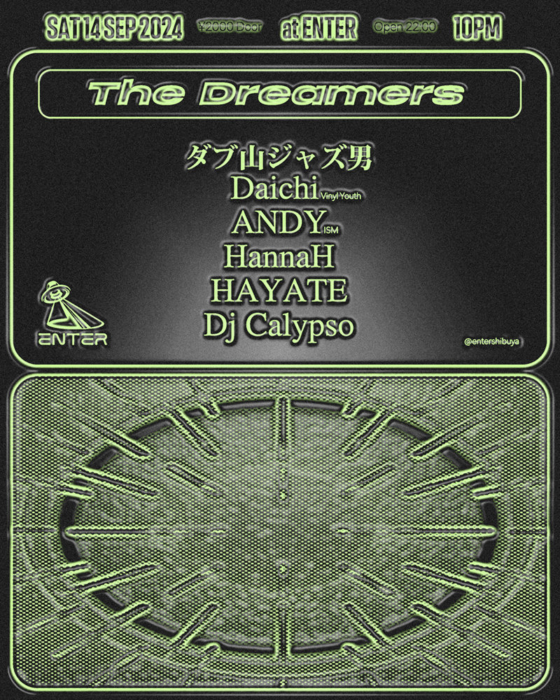 ENTERの土曜日を鮮やかに照らすThe Dreamers。 ENTERでの開催は5回目を迎え、異なるベニューで活躍するDJが一夜に集結。