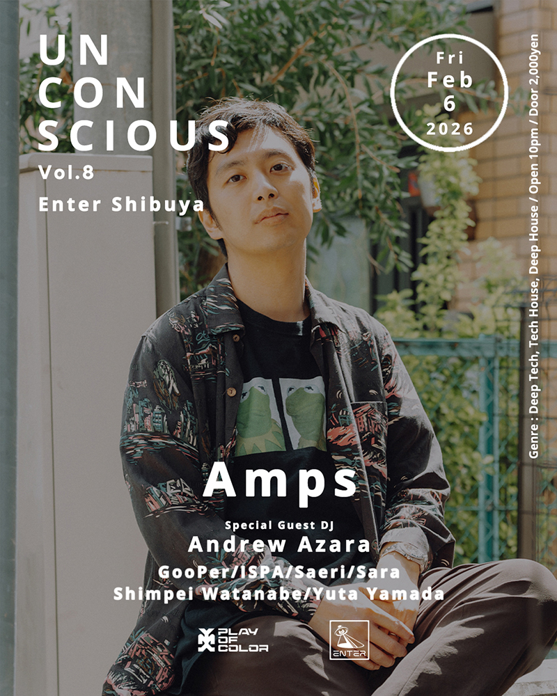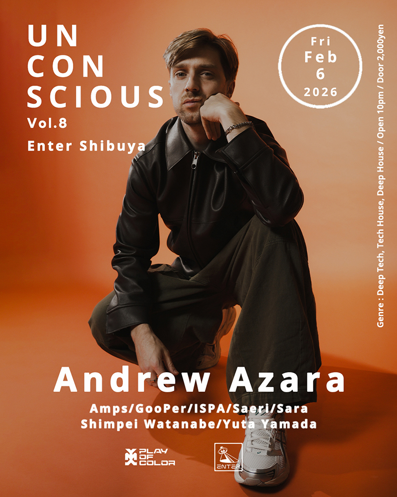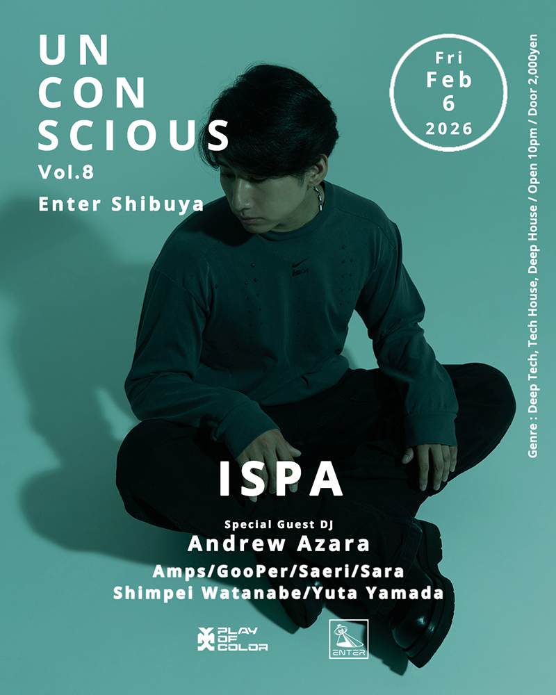 UNCONSCIOUS is a party hosted by Play Of Color, a Japan based Deep Tech/Tech House label that has invited a wide range of artists, from established names such as Kolter, Vitess, Robbie Doherty, RUZE, THEOS, Dennis Quin, and Michel De Hey to many up and coming DJs, while also releasing tracks that have been supported by numerous international artists.